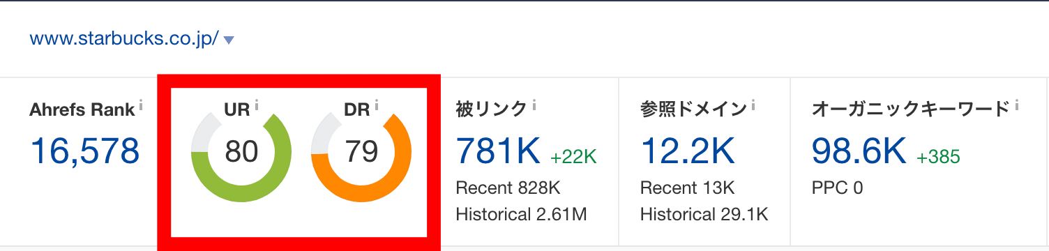 立ち上げたばかりのサイトであればもちろん、UR・DRは0ですし、このスタバの数値は何年かけても追いつける数値ではありません(高くてもUR・DR30前後)