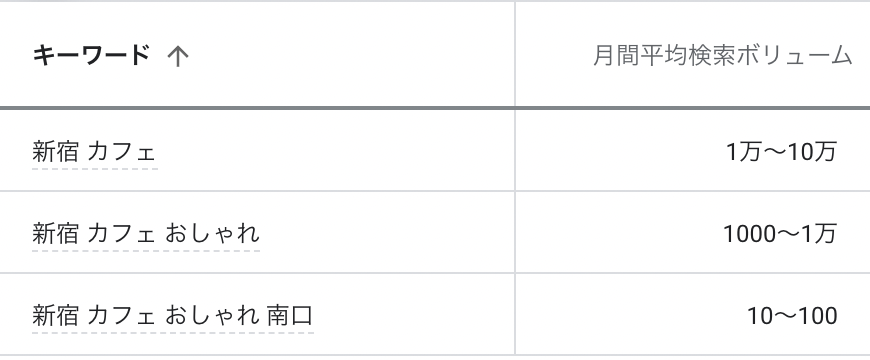 確かに集められることは確かですが、「新宿 カフェ」キーワードで検索する人が1〜10万人いたとしても、1〜10万人全員が同じ情報を求めていることにはなりません。